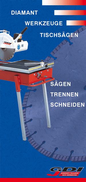 Tips zur Sägetechnik mit Diamanttrennscheiben  GDI Katalog mit 74 Seiten Diamanttechnik kostenlos bestellen