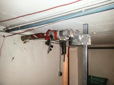 Stativgeführtes Bohren bis 150 mm, Befestigungstechnik (Dübellöcher), Heizung -sanitär, Hochbau, Tiefbau ..... Auch als Überkopfbohrsystem Fussboden- oder Wandbohrsystem erweiterbar.