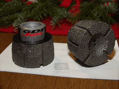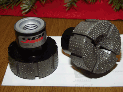 Bild links: Diamantbohrköpfe mit Naturdiamanten