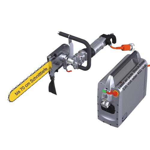alles mit einer Box für 230 Volt oder 400 Volt mit nur einem Antrieb für sämtliche schnellwechselbaren Werkzeuge.