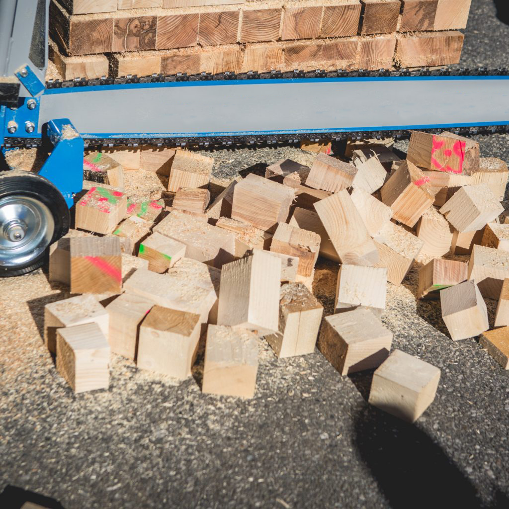 Brennholzproduktion, Kunstoffrohre zuschneiden usw.